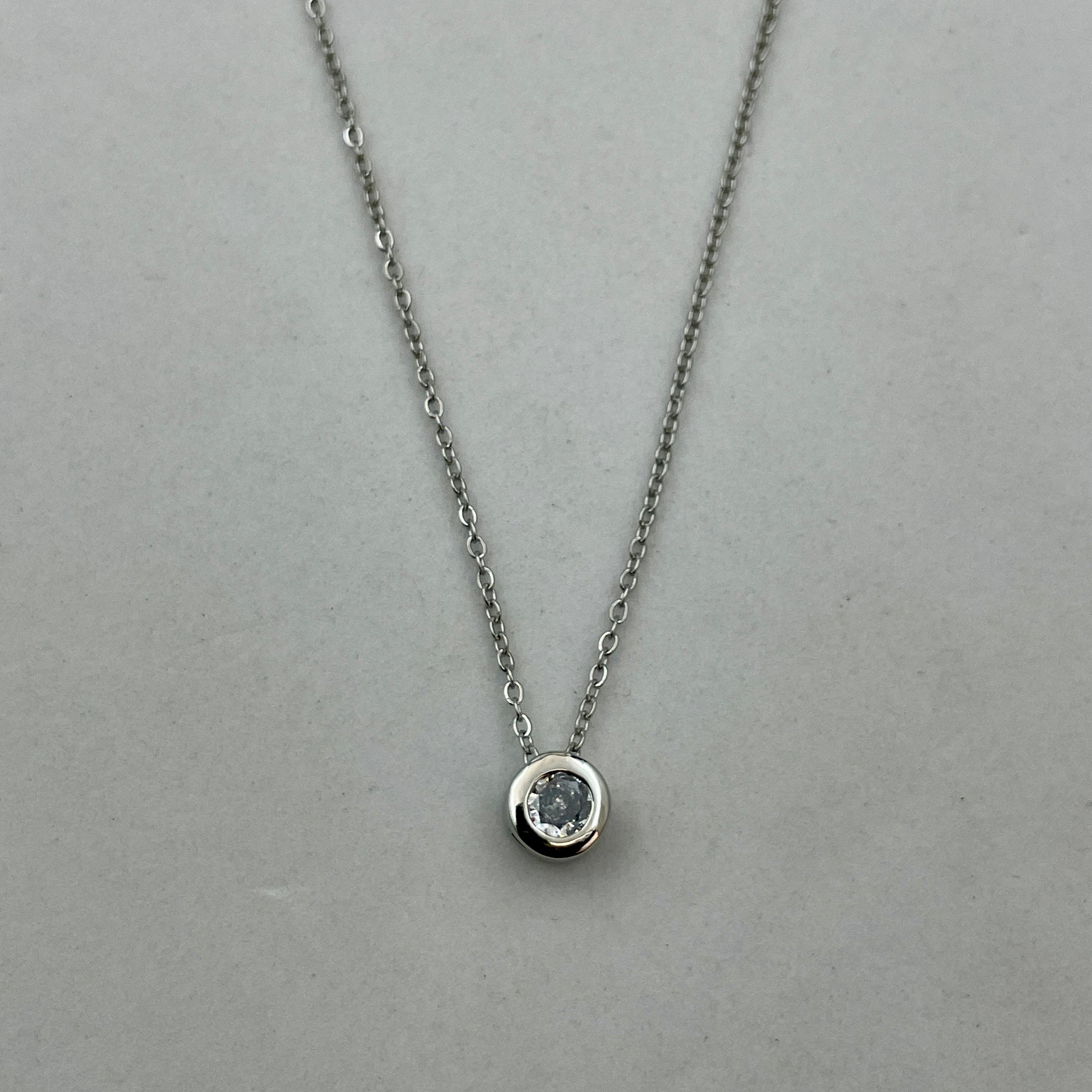 Bezel-Set Solitaire Diamond Pendant Necklace - Sterling Silver
